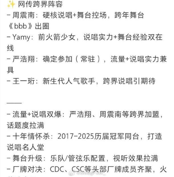网传严浩翔、周震南、Yamy、王一珩都会加盟。