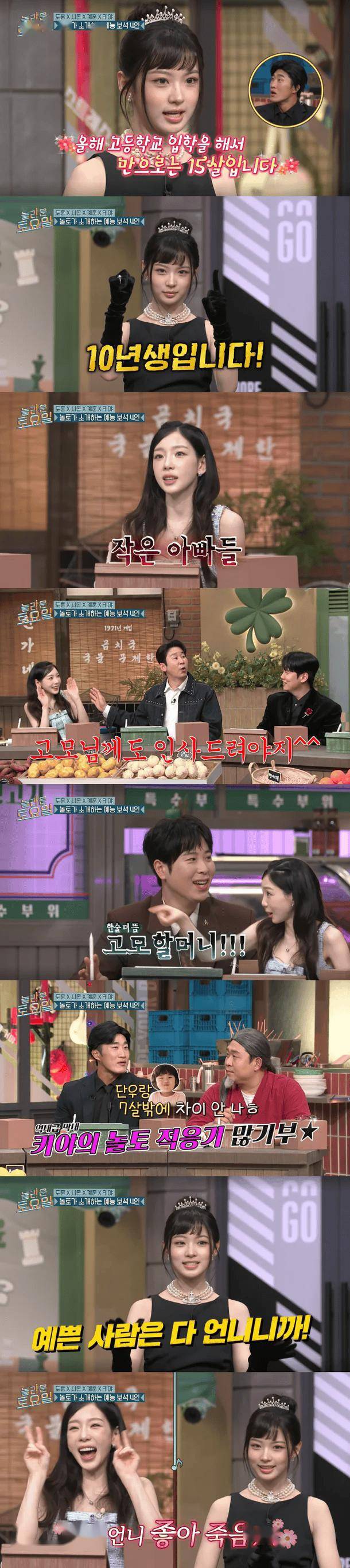 但真正的高光时刻属于KiYa。面对这突如其来的“辈分压力”,这位15岁的忙内展现出了超越年龄的“话术”功底。